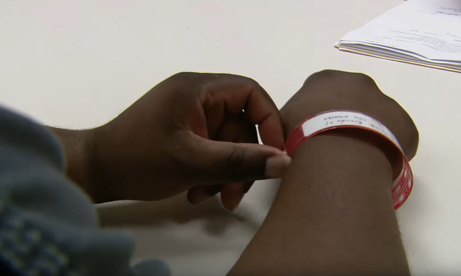 Tù nhân đeo thẻ căn cước trên cổ tay. Ảnh: Filmrise .