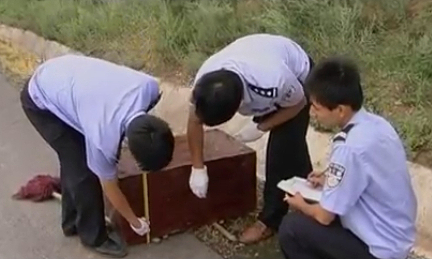 Vào lúc 8:42 sáng ngày 10 tháng 5 năm 2009, người lái xe đã gọi cảnh sát ở huyện Ban, tỉnh Thiểm Tây và báo cáo rằng một xác chết được tìm thấy trong một hộp gỗ màu nâu trên đường. Khám nghiệm tử thi cho thấy người đàn ông gần 30 tuổi, cao 1m72, mặc quần kaki sáng màu và các ký tự tiếng Anh in trên áo sơ mi dài tay. Nạn nhân đã chết khoảng bốn ngày trước và quấn một miếng vải cắt trên ga trải giường. Các tấm còn lại được sử dụng để che cơ thể bằng khăn.